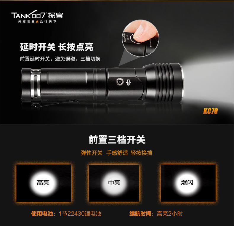 渠道供應 TANK007探客手電筒公司成品庫存充足,產品信息完整,能很好的配合各類電商平臺,行業垂直平臺,靈活上架,拓展市場。 |